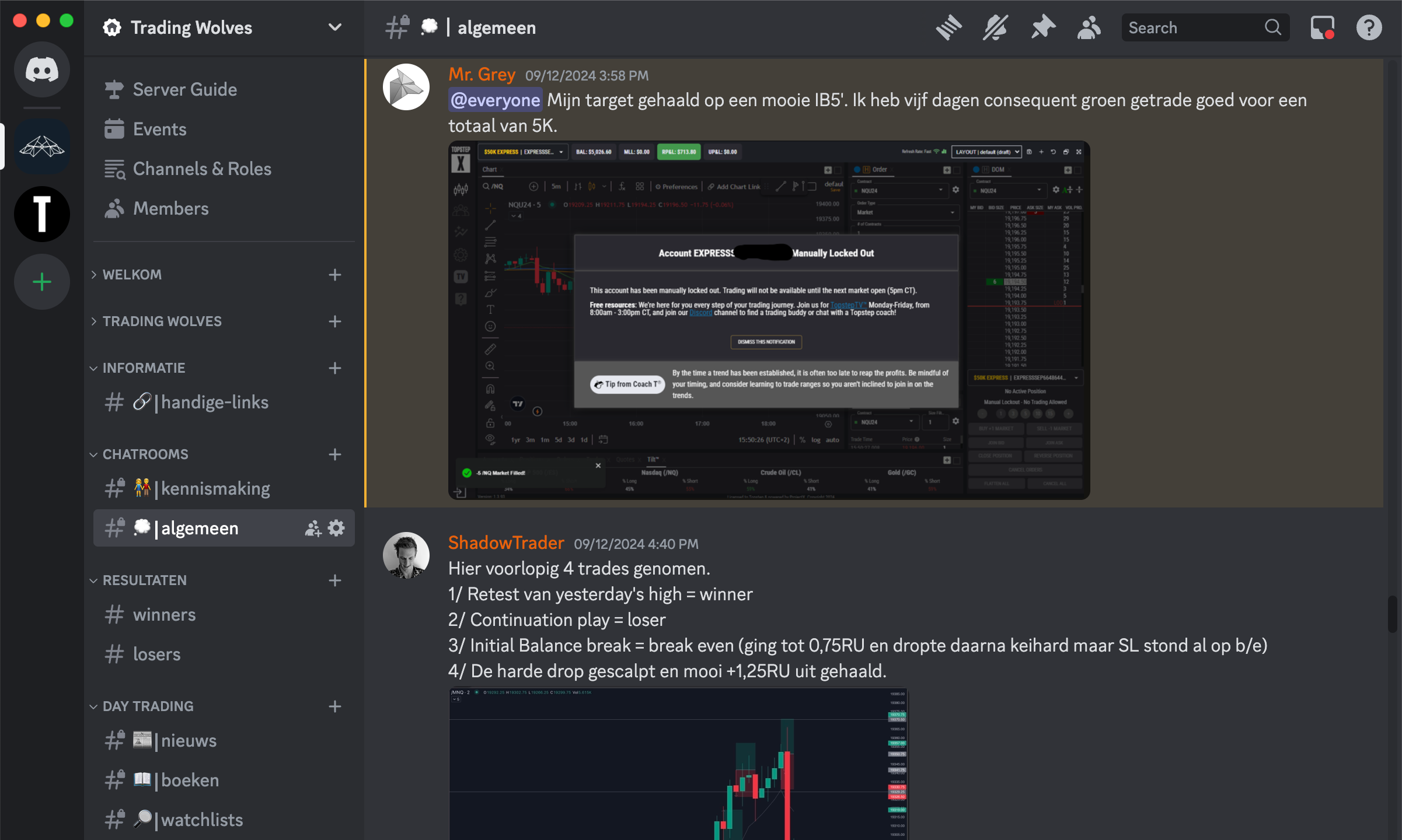 In de 'Trading Wolves Masterclass' volg je een gestructureerd traject dat je de nodige kennis, tools en mindset aanleert om consistent winstgevend te traden. Trading Wolves is een community, met persoonlijke mentoren, lessen, live trading sessies en één-op-één mentor sessies.